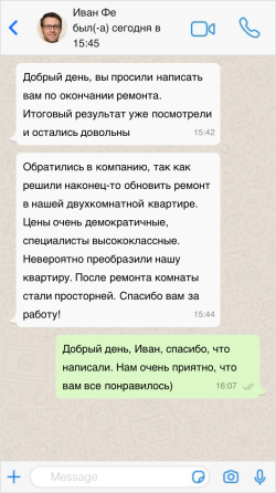 Выполняем доставку строительных материалов, подготовим дизайн-проект по желанию заказчика. На цену ремонта действует площадь помещения, срок работы и выбор строительных материалов. Сделаем ремонт в любой комнате: в гостиной, кухне, туалете, спальне, независимо, от того проживаете вы в хрущёвке или новом доме.